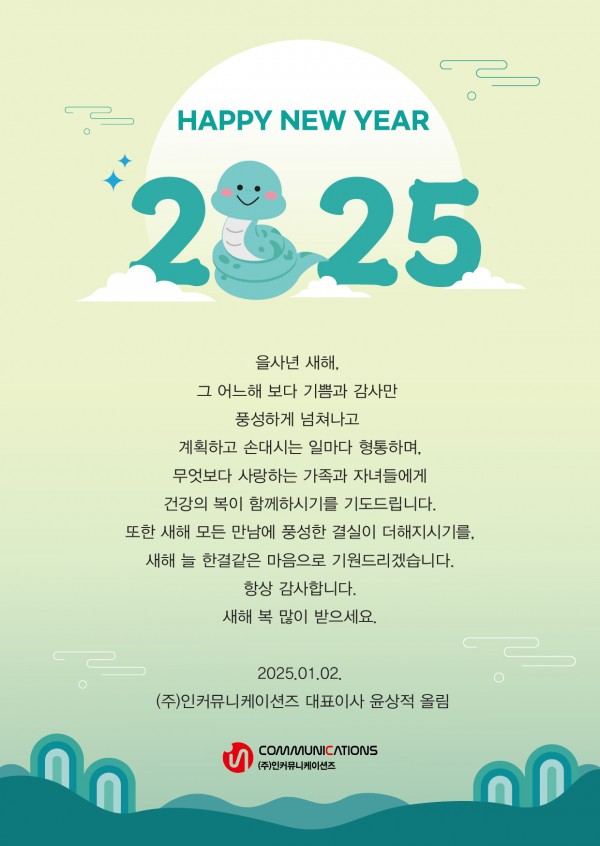 2025년 새해 복 많이 받으세요 페이지 정보 작성자 InComm 작성일25-01-02 17:59 조회1,532회 댓글0건 이전글 다음글 목록 본문 2025년 새해 복 많이 받으세요 이전글 다음글 목록