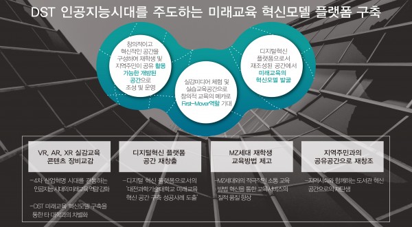 DST 인공지능시대를 주도하는 미래교육 혁신모델 플랫폼을 구축하여 VR, AR, XR 실감교육 콘텐츠개발과 함께 디지털 혁신 플랫폼 공간 재창출,
