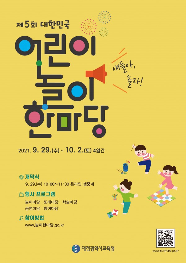 대전광역시교육청에서 개최하는 제5회 대한민국 어린이 놀이 한마당 행사 대행용역 수행 업체로 낙찰되었습니다.